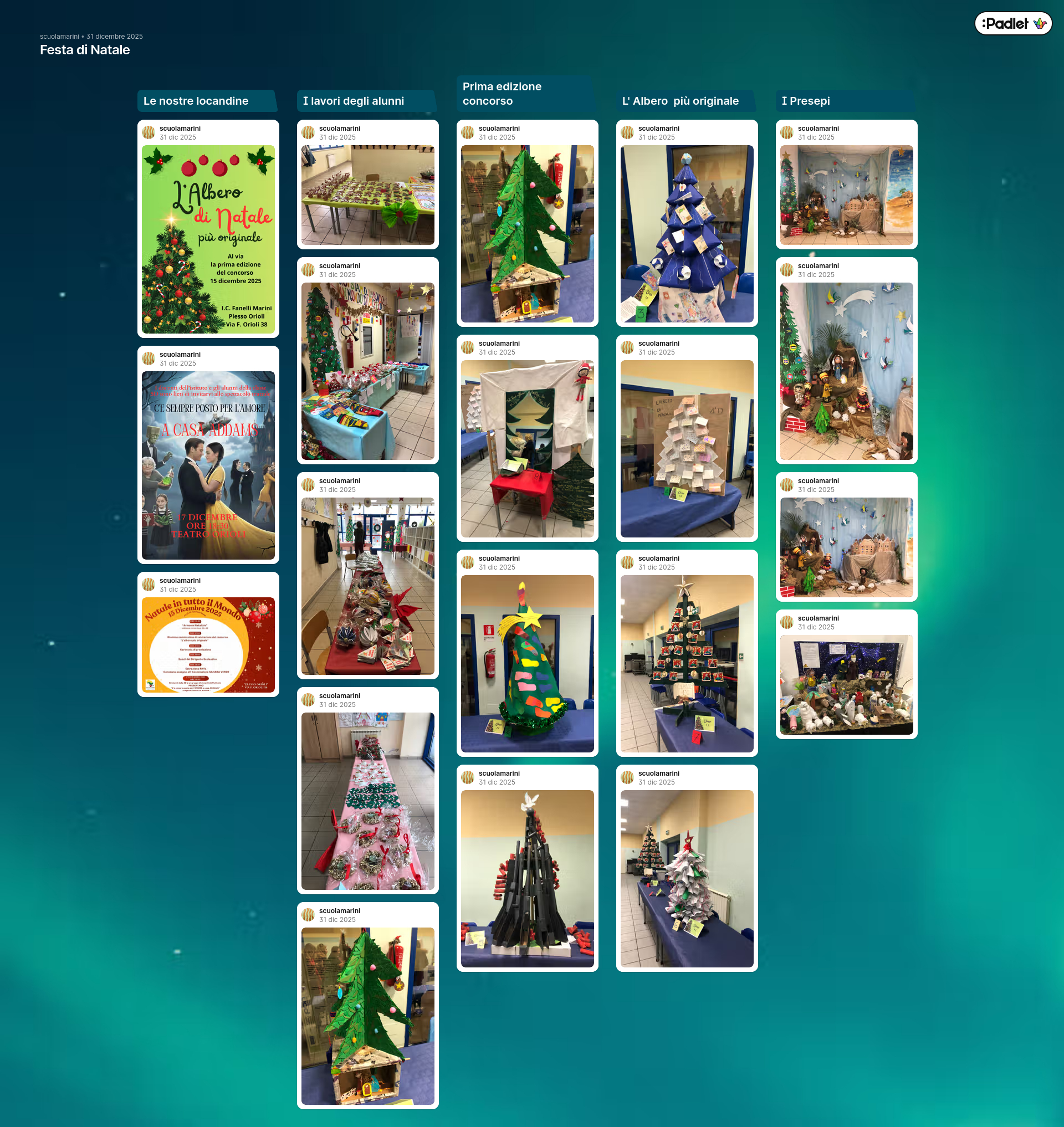 Quest'anno abbiamo lanciato una sfida alla fantasia! Il primo concorso interno ha visto classi e famiglie cimentarsi nella creazione dell'Albero più originale. Materiali di riciclo, design astratti e decorazioni fatte a mano hanno reso l'atrio della scuola un vero museo di creatività. Complimenti ai vincitori e a tutti i partecipanti per l'entusiasmo!